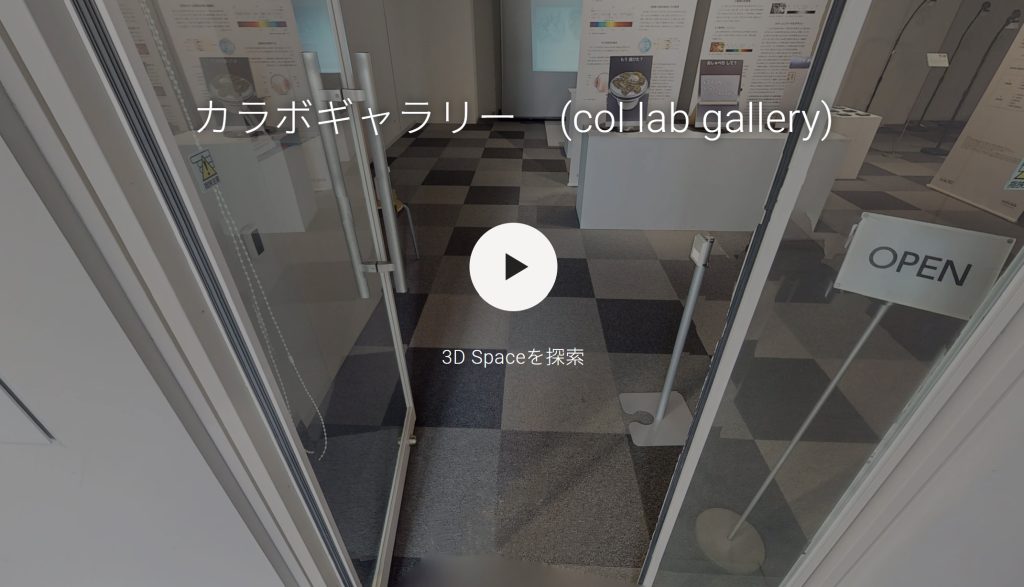 Col lab ギャラリーは、本研究センター創立当初より広く一般に公開しております。2026年より、この公開に加え、デジタル3D表示、(ウォークスルー表示)のバーチャル空間での訪問も可能としました。